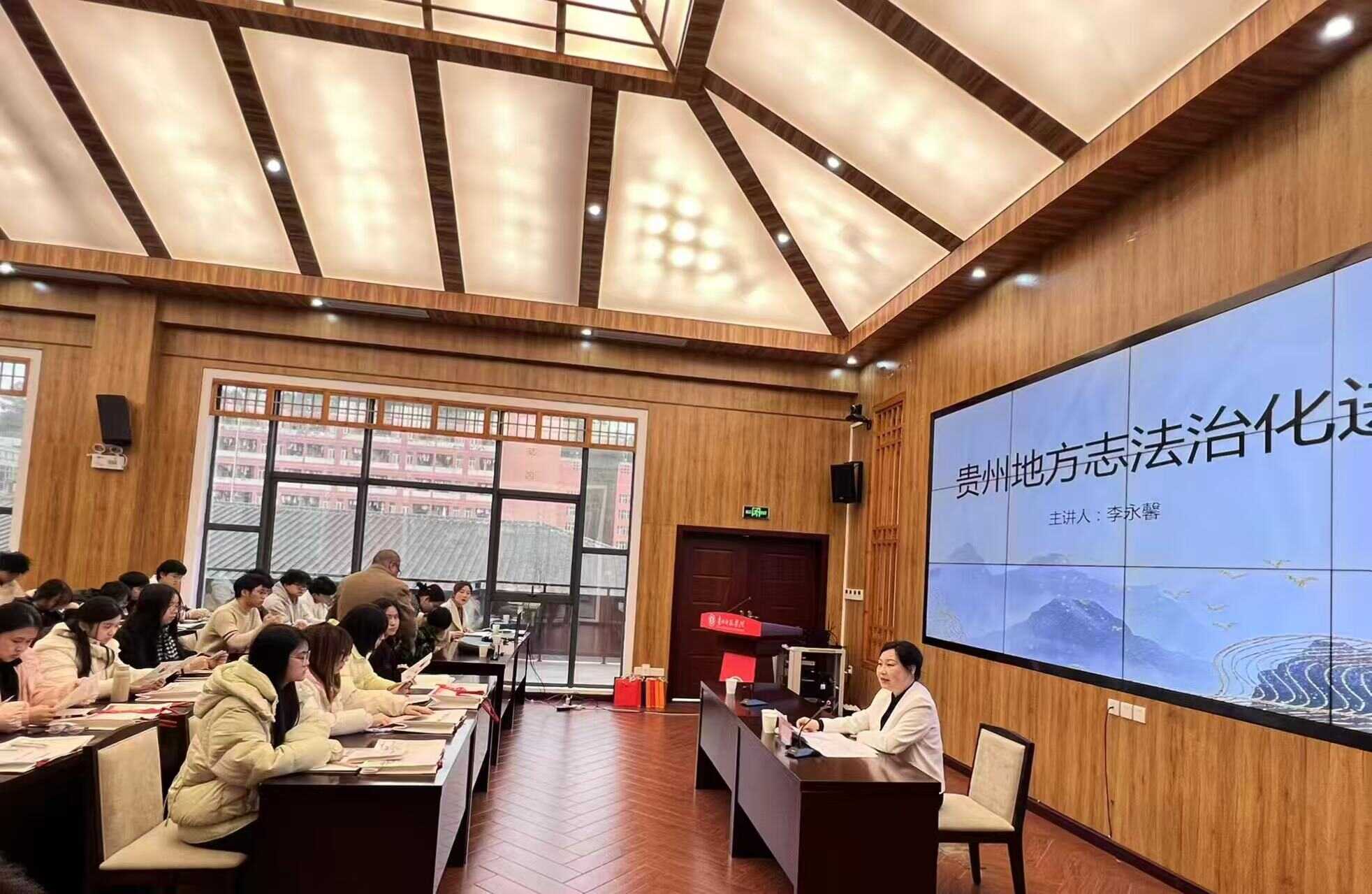 活动包括专题讲座、普法小课堂、有奖问答三个环节组成。其中,“新时代贵州社科大讲坛”专题讲座特邀“贵州省第二届十大法治人物”、贵州省情专家库专家、贵州省档案馆(省地方志办)副馆长(副主任)李永馨主讲《贵州地方志法治化进程》。